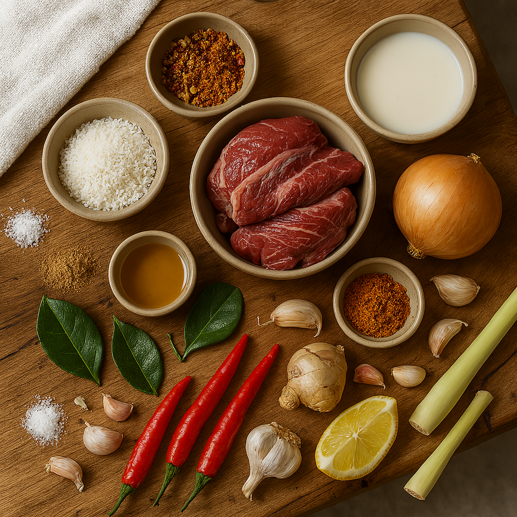 ///Beef Rendang to prawdziwa perła kuchni malezyjskiej – danie, które gotuje się długo, ale każda minuta tego czasu zwraca się z nawiązką w smaku. Wołowina duszona powoli w mleku kokosowym i mieszance aromatycznych przypraw staje się miękka jak masło, a sos gęsty, intensywny i pełen głębi.