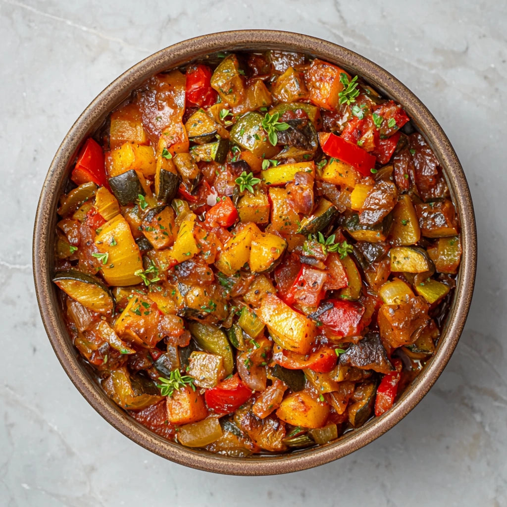 Delikatne i kolorowe danie warzywne - wspomnienie późnego lata znad morza Śródziemnego. Do zjedzenia na ciepło lub na zimno.