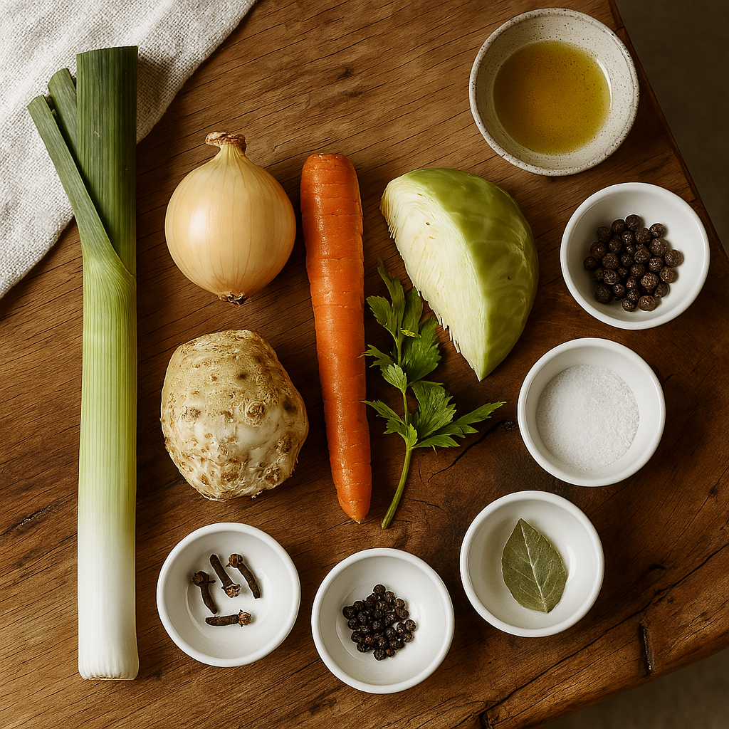 Czysty, delikatny, klarowny wywar z marchewki, selera, pietruszki i pora z przyprawami – dobrze smakuje solo ale jeszcze lepiej się dogaduje z innymi i służy jako baza dla każdej zupy!